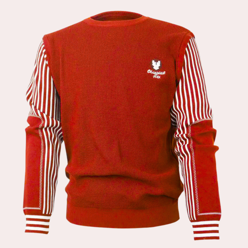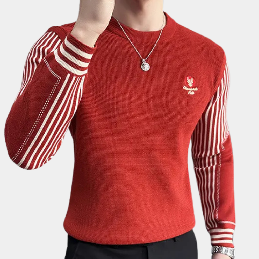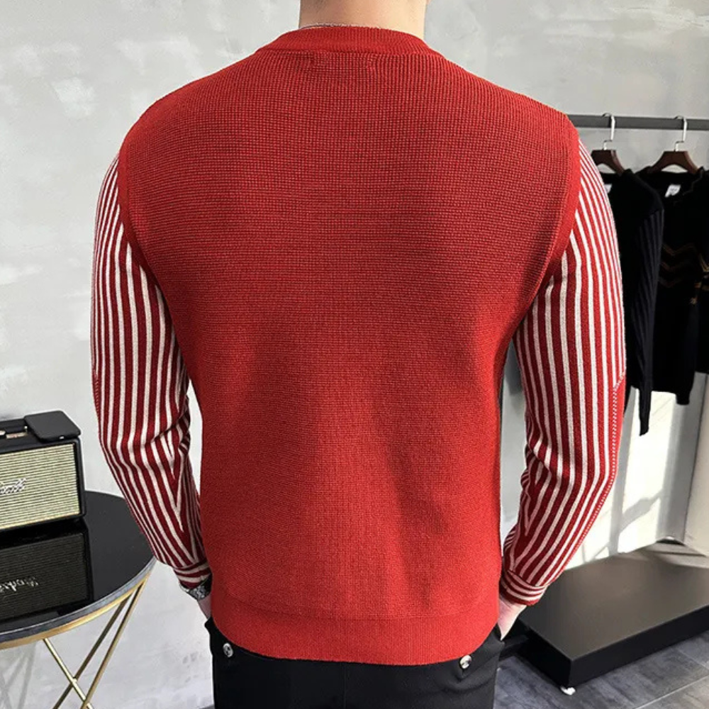 Le pull ANDERS - Casual Sweater for Men présente des détails rayés frappants sur les manches, ajoutant une touche de mode à un design intemporel.
