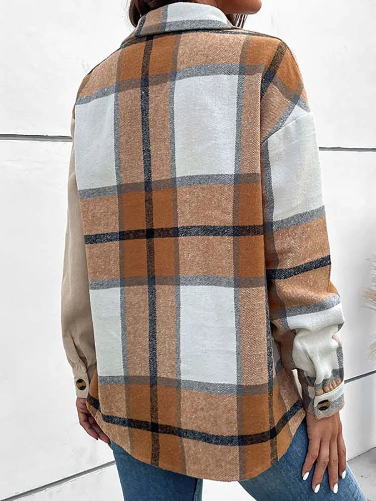 Ajoutez une touche d'élégance à votre collection d'automne avec ce chemisier beige à la mode. Son impression à carreaux éblouissante et sa coupe confortable en font un choix populaire parmi les femmes. Qu'il s'agisse d'une tenue habillée ou non, ce chemisier allie sans effort style et praticité. Ne manquez pas cette pièce essentielle de l'automne!